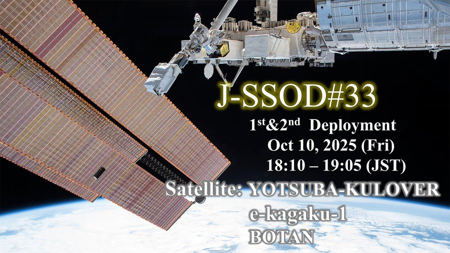 3 CubeSats dont au moins un utilisant des fréquences sur des bandes radioamateurs seront déployés le 10 octobre 2025 depuis le module japonais « Kibo » vers 18h10 JST, donc 9h10 UTC
