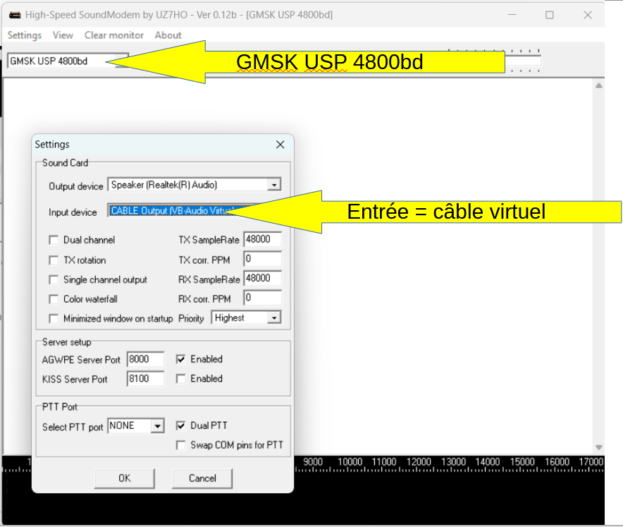 Vous réglez ensuite le canal A sur GMSK USP 4800bd