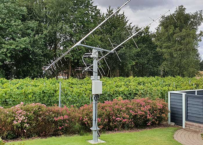 Ils en connaissent le fonctionnement et les particularités, ce qui a permis un assemblage rapide, ci dessous la 2 x 7 éléments croisés pour le 144 Mhz (bande radioamateur des 2 mètres).