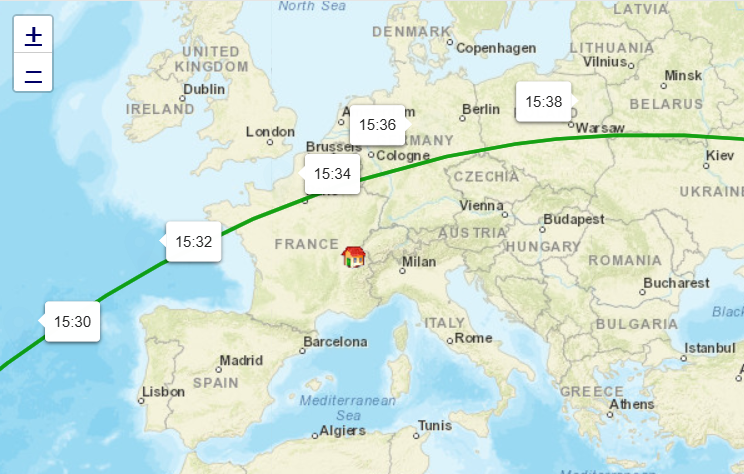C’est un contact direct via la station amateur GB4SLS, les signaux de liaison descendante de l’ISS seront audibles au-dessus de la France sur la bande FM étroite de 145,800 MHz.